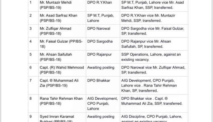 پنجاب پولیس میں تقرر و تبادلے