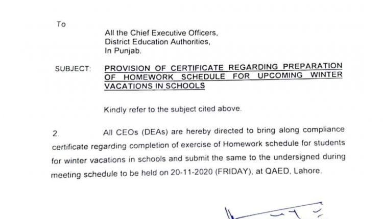کرونا وباء کی دوسری لہر پنجاب میں تمام تعلیمی ادارے 24 نومبر سے بند کرنے کا نوٹیفکیشن جاری تعطیلات کا دورانیہ 5 ہفتوں پر محیط ہوگا زیر تعلیم طلباء کو ایک ماہ کا ہوم ورک دینے کے احکامات جاری