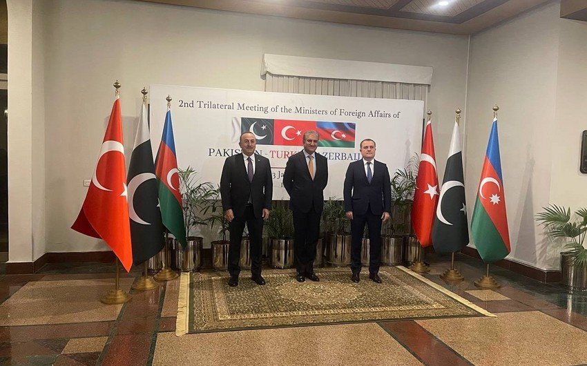 آزربائیجان کے وزیر خارجہ کی وفد کے ہمراہ وزارتِ خارجہ آمدوزیر خارجہ مخدوم شاہ محمود قریشی نے اپنے آزری ہم منصب کا خیر مقدم کیا